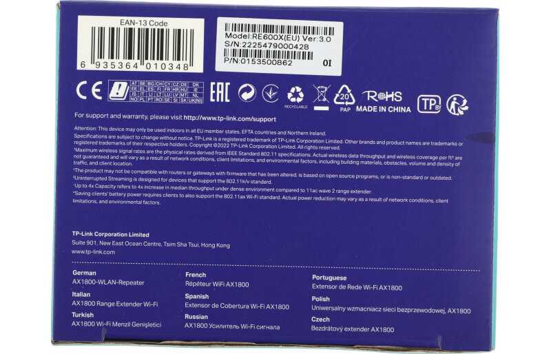 Характеристи TP-LINK EX220 AX1800 WiFi6