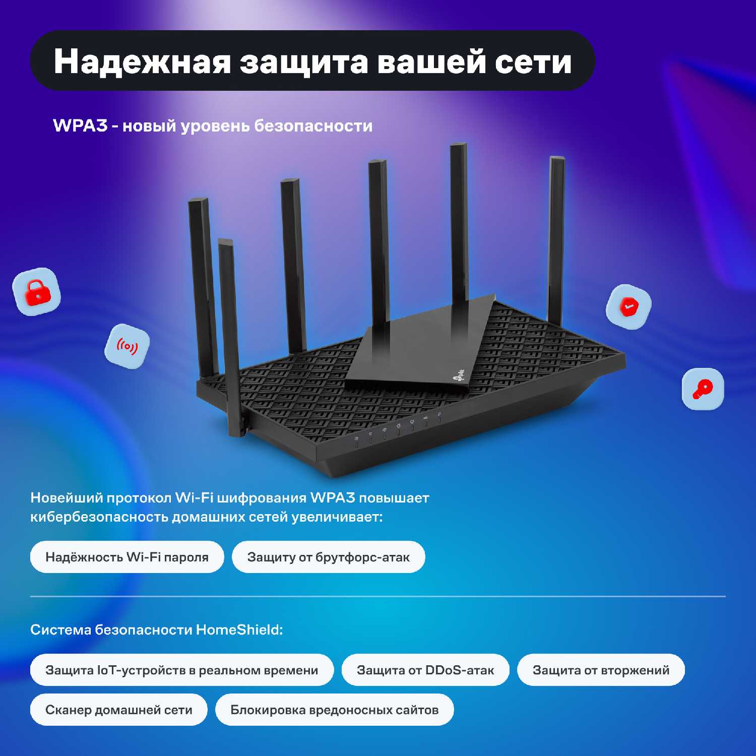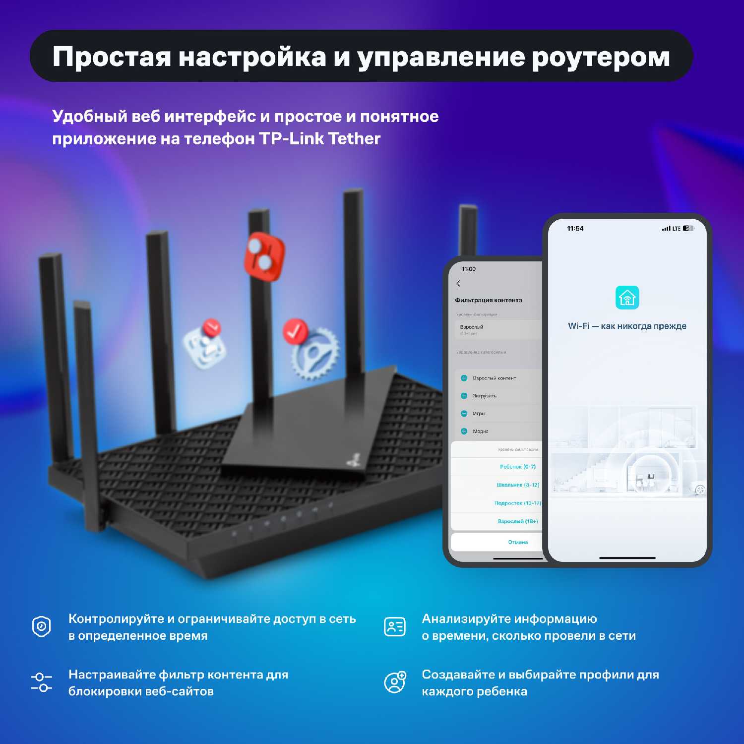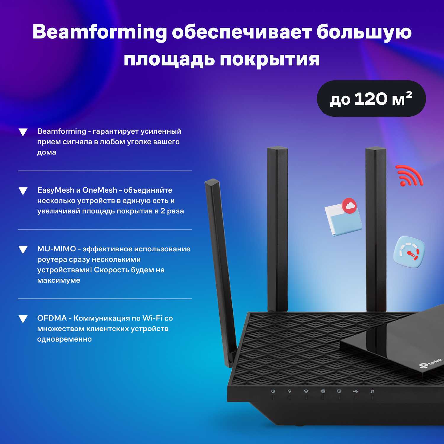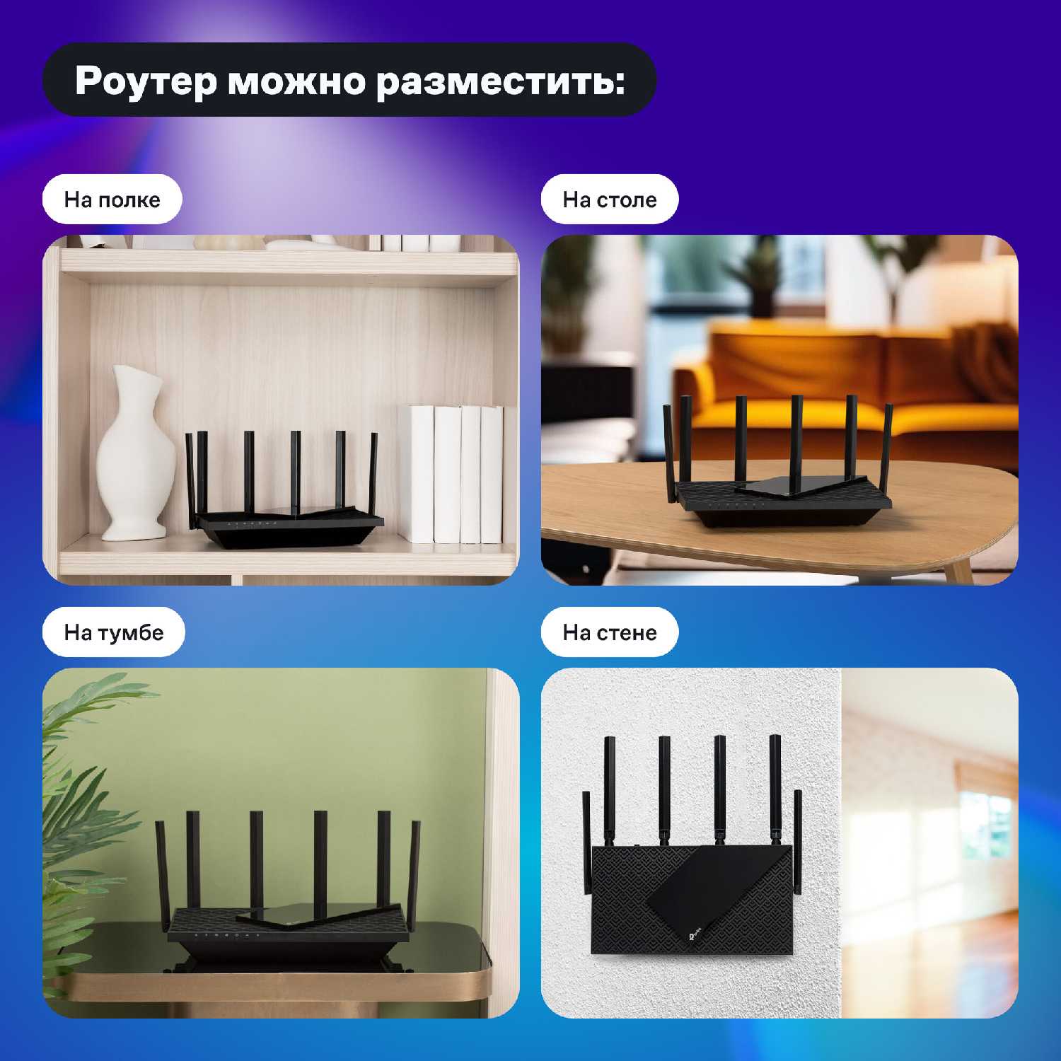 Функции и особенности : | крепление на стену, метод шифрования данных WEP, метод шифрования данных WPA, метод шифрования данных WPA2, метод шифрования данных WPA3, поддержка IPv6, поддержка MIMO, поддержка Mesh Wi-Fi, поддержка USB-модема, режим моста, режим репитера (повторителя) |
