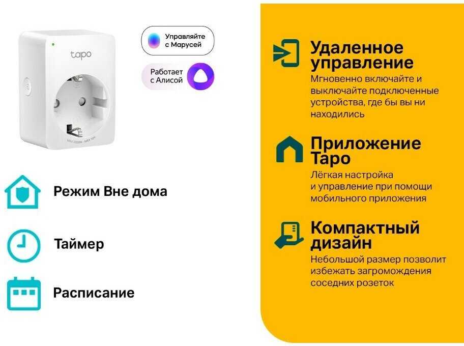 Дополнительная информация : | Умная мини Wi-Fi розетка Tapo P100 (2 шт.), руководство по быстрой настройке |