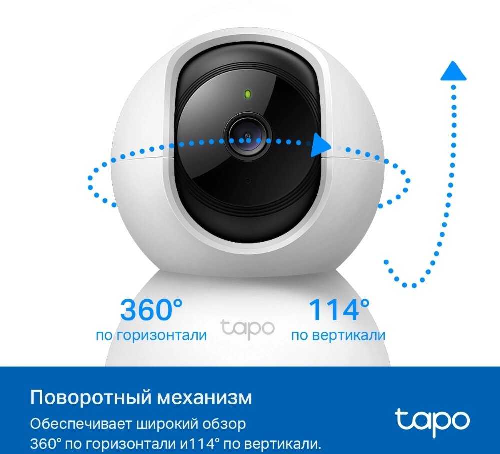 - Горизонтальный поворот на 360° и вертикальный на 114°, позволяет охватывать всю комнату без слепых зон.