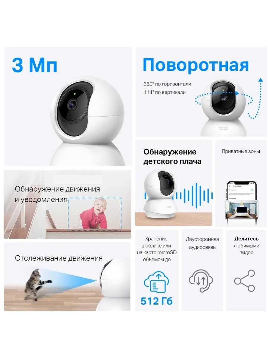 Основные ограничения и проблемы: Звук через микрофон часто описывается как слабый, с бульканьем или кваканьем, что делает невозможным разобрать тихую речь на расстоянии свыше 1-2 метров, по отзывам 40% пользователей. Динамик также передает голос с искажениями и низкой громкостью, что снижает эффективность функции рации или няни. Камера капризна к microSD-картам, отказываясь форматировать дешевые модели даже класса 10, и в 20-30% случаев портит флешки за 1-2 месяца. Wi-Fi-соединение только на 2.4 ГГц приводит к отвалам от сети у 15-20% пользователей, особенно при слабом сигнале или ширине канала выше 20 МГц. Вертикальный угол поворота ограничен, не достигая 90 градусов вверх, что создает слепые зоны при установке на полку или низко на стене. Облачное хранение Tapo Care платное (от 300 руб/мес), но в России оплата через Google Play заблокирована санкциями, делая удаленный доступ к записям проблематичным без VPN. Просмотр архива с карты возможен только в приложении Tapo и только при подключении к той же Wi-Fi-сети, без скачивания на ПК напрямую. Частота кадров падает до 15-25 fps при повороте камеры, восстанавливаясь через 1-2 минуты, что заметно в динамичных сценах. При отключении электричества может пропасть 1-2 минуты последней записи с карты, по жалобам 10% пользователей. Индикатор мигает красным при потере связи, даже если индикация отключена в настройках. Нет LAN-порта, что ограничивает использование в местах с нестабильным Wi-Fi. Режим панорамы на 180 градусов иногда ложно срабатывает на статичные объекты вроде висящей одежды, генерируя ненужные уведомления. Многопользовательский доступ к архиву ограничен: только один аккаунт может просматривать запись за раз, онлайн — без лимита. Щелчки реле при переключении на ночной режим слышны на 65-70 дБ, раздражая в тихих помещениях. Зависания требуют отключения от розетки, без удаленной перезагрузки.