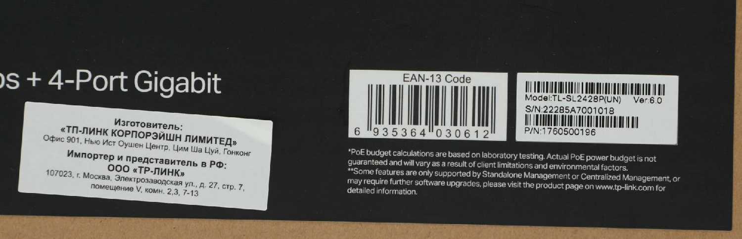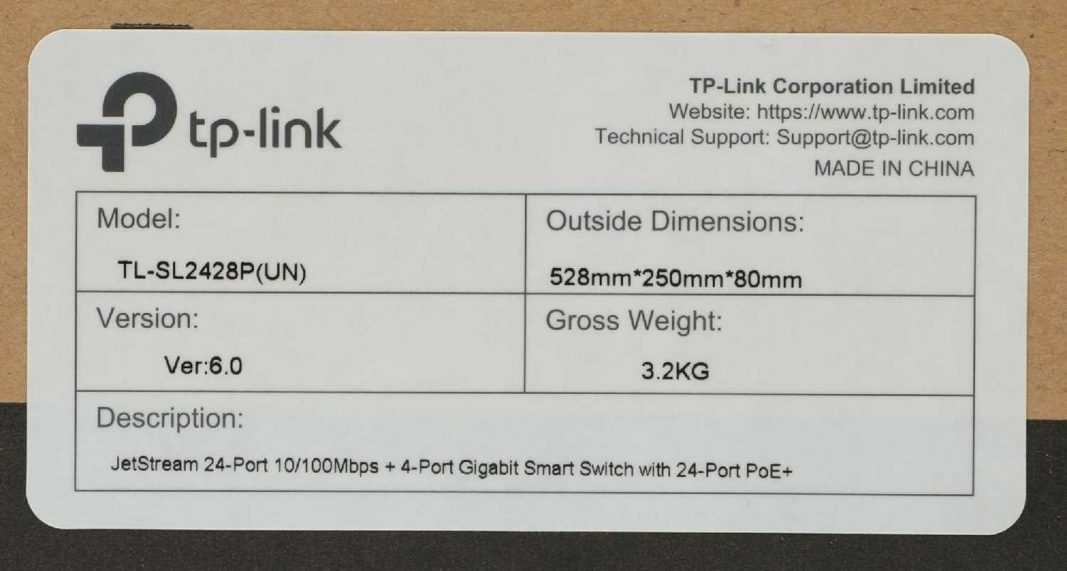 | Дополнительная информация : | Коммутатор TP-LINK TL-SL2428P, Адаптер питания, Руководство по установке |