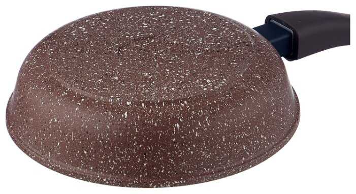 Одна из лучших фирм делающих сковороды с керамическим покрытием. Серия "Доломит" это посуда с самым толстым покрытием 6 слоёв. Цвет покрытия коричневый. Может не самый весёлый, но практичный. Со временем покрытие немного меняет цвет, истирается или, если не чистить, может покрываться нагаром. На коричневом...