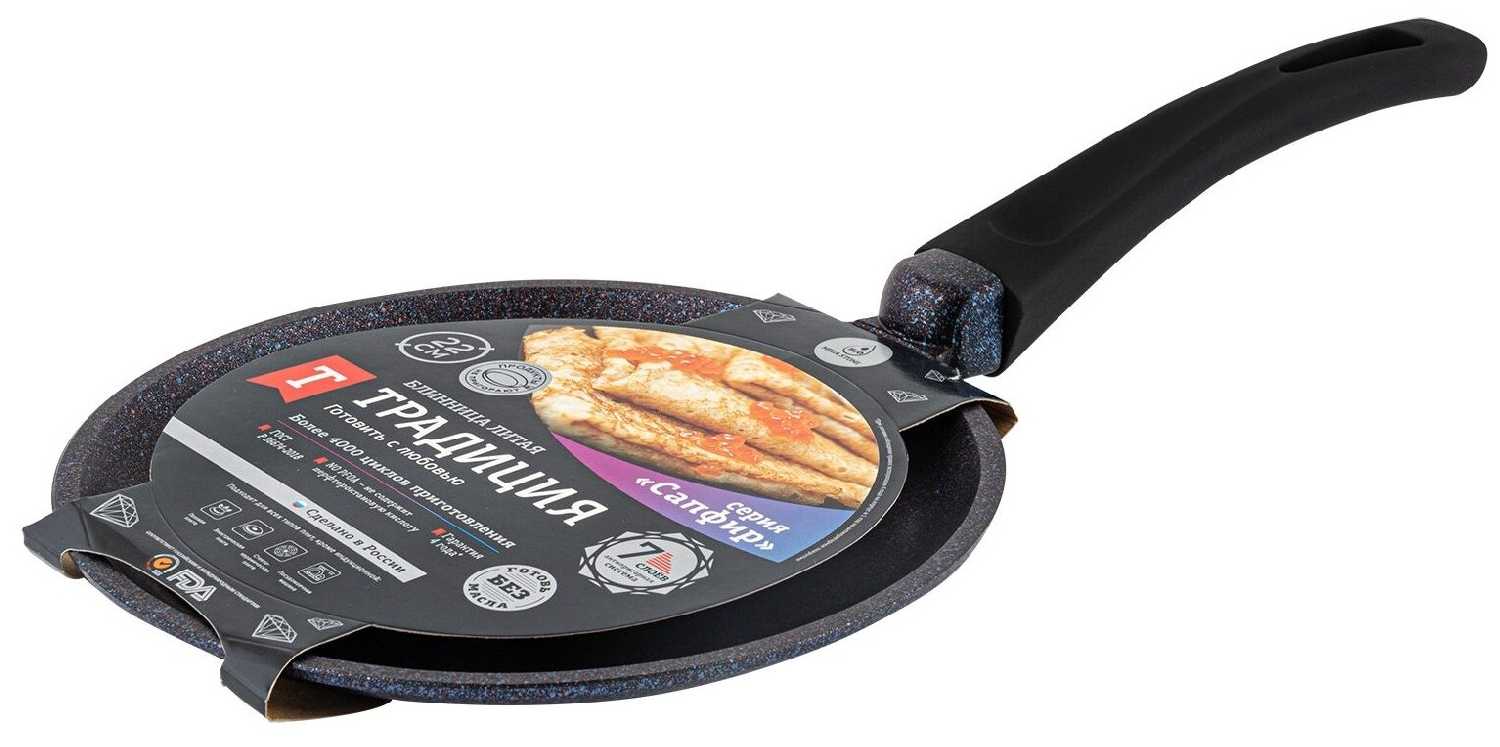 Отличная сковорода, маме очень понравилась, удобно жарить и переворачивать блины, не пригорают, удобна в руках по форме и весу, масла минимум, повышенный срок службы.
