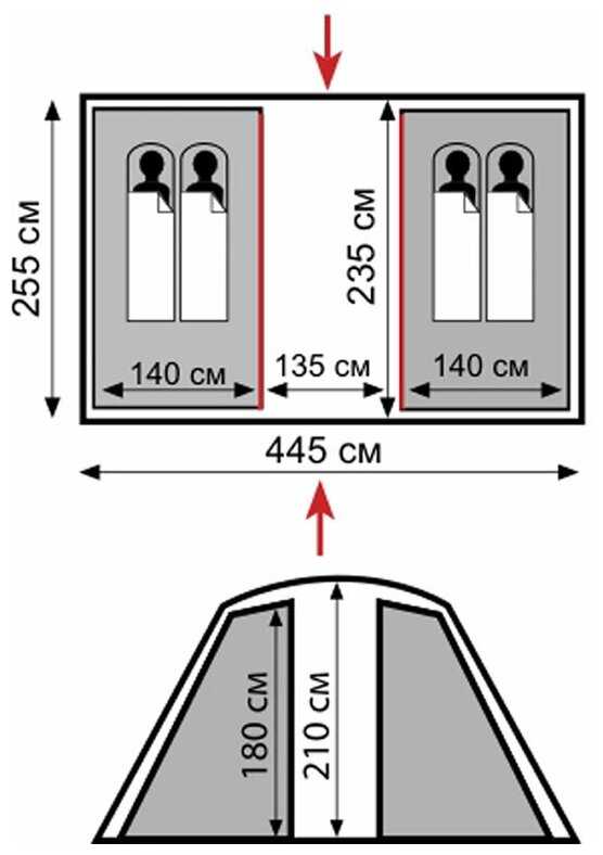 Палатка добротная, с мощными дугами, хорошей вентиляцией. Но одному установить нереально. Не хватает кармашков на внутренних палатках по коротким сторонам - телефон, например, положить.