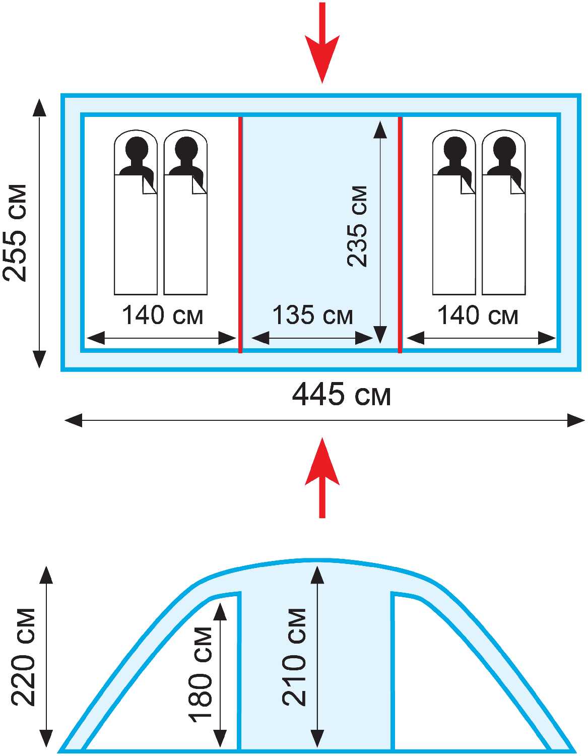 - + Классная палатка для семьи из четырех человек
