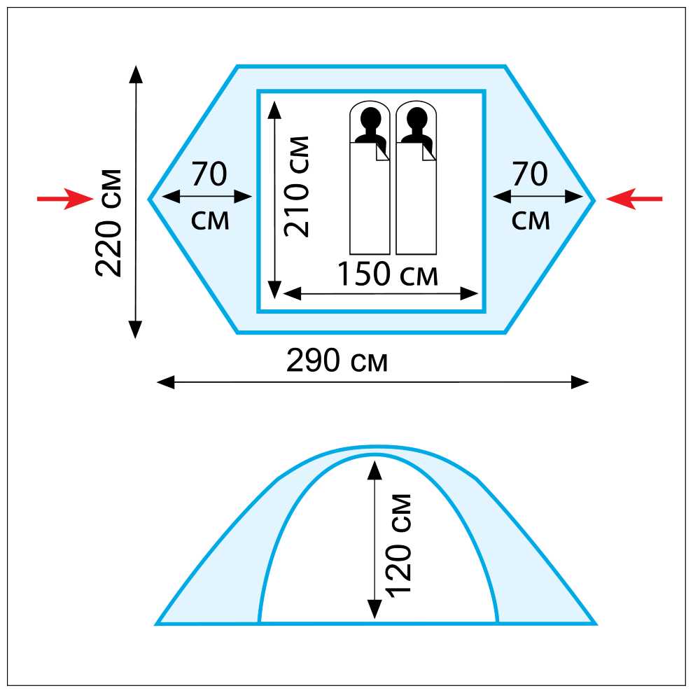 - + Обычная палатка, 2 входа, хорошо продуваемая