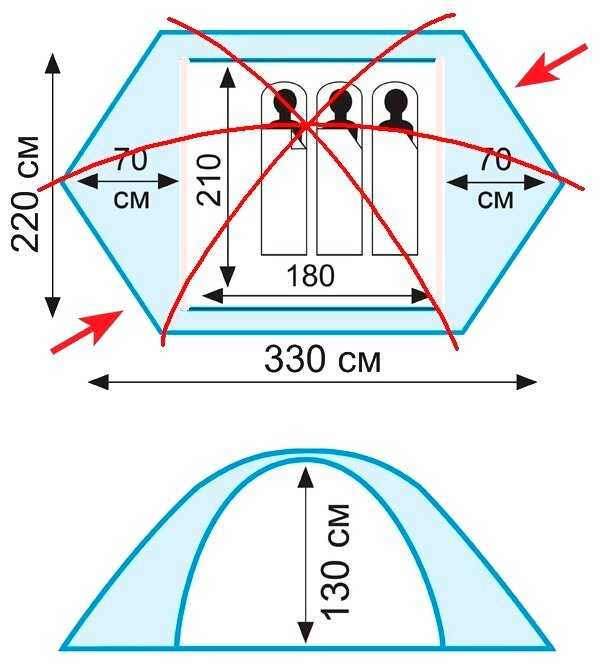 - - 1)Тяжелая. весит как 5л баклажка с водой. Когда намокнет - будет еще больше. 2)В комплекте 3 стойки - красного цвета. Две (от угла к углу) одинакового размера , третья (от входа к входу) чуть длиннее (на 20-25см). Чтобы определить какая и для чего - необходимо их все собрать и положить рядом. 3)Просовывать каждую стойку в рукав на тенте можно только с одного края. Второй конец рукава - зашитый (тупиковый). Рано или поздно туда забьется мусор и земля. Вытрясти будет нереально. 4) через вход, в качестве "порожка" протянута красная стропа. Имхо сборник грязи с мокрых ботинок - что при складывании непременно испачкает все. 5) Может я и не приноровился еще, но когда просунуты все три стойки, чтобы заправить концы в отверстия нужно или собирать в 4 руки или опирать центр изнутри на стоящий рюкзак (не менее 1м высотой)