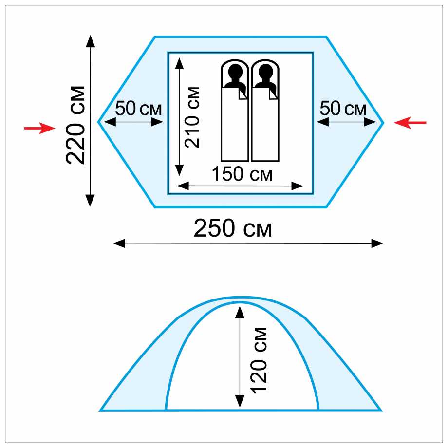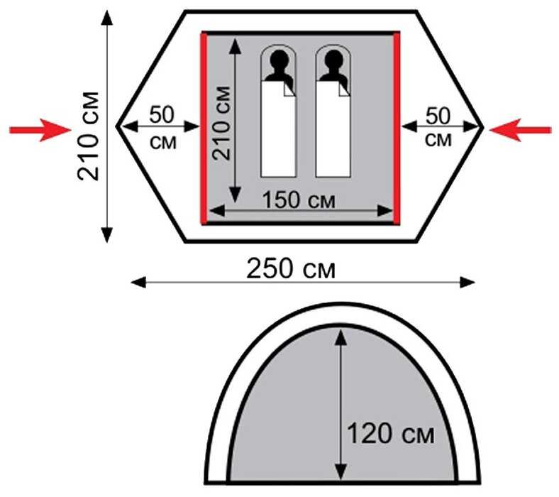 - + + Довольно широкая для двушки, шире стандартной, поэтому влезают вещи (заявлено 150 см в ширину). Также у палатки хорошая высота. Вообще довольно обитаемо внутри.