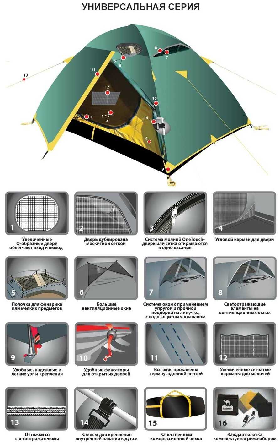 Трамп одна из лучших палаток. Очень качественные материалы, легко собирается, не пропускает воду, в то же время "дышит". У нас была двухместная. Очень долго служила нам. Решили взять посвободнее. А та станет хозяйственной. Однозначно, рекомендую!