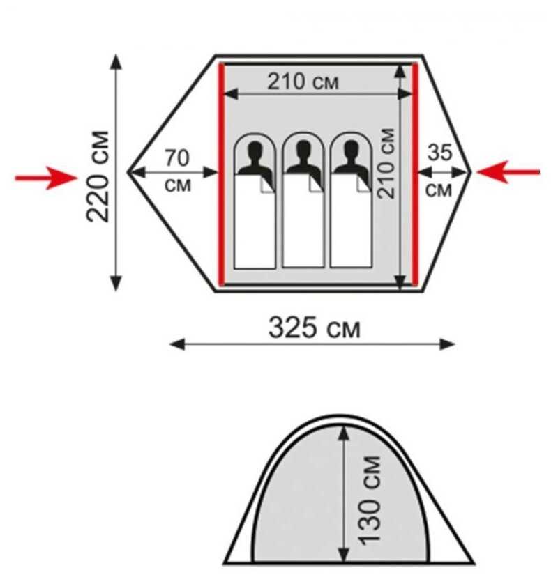 Вполне нормальная палатка если нет очень сильного ветра и дождя. Втроем будет мало места
