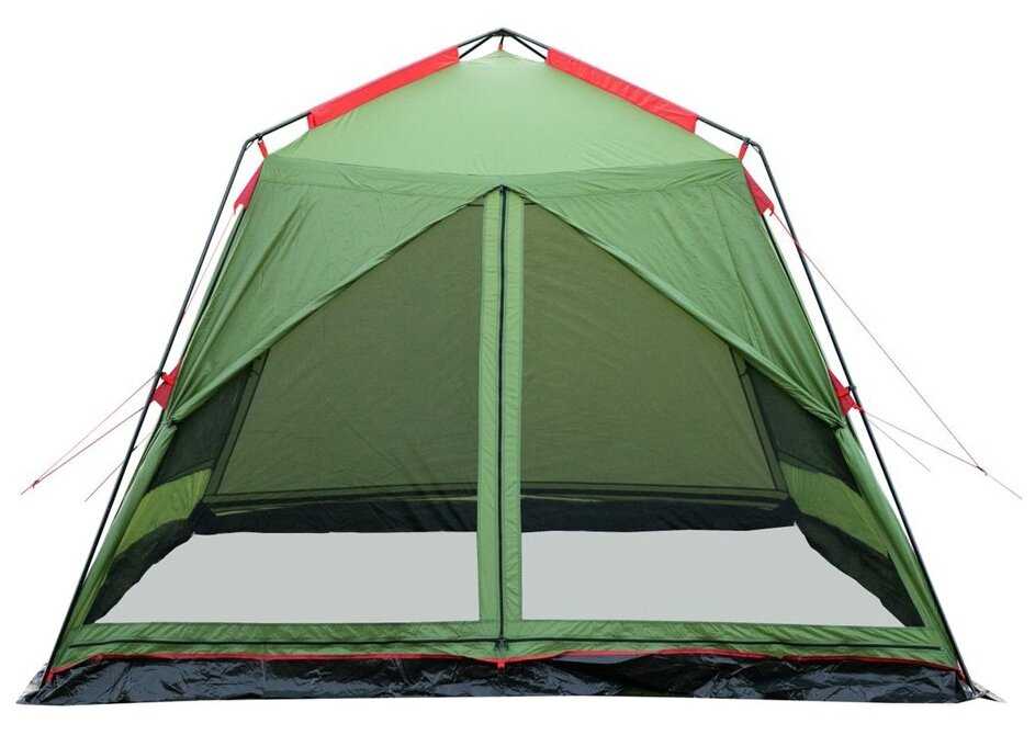 - + Шикарный шатёр, очень понравился! Легко собирается, вдвоём с подругой собрали минут за 10. Плотная ткань, думаю, будет хорошо держать влагу. Молнии с двух сторон, отдельно на тенте, отдельно на москитках, всё можно закрепить...