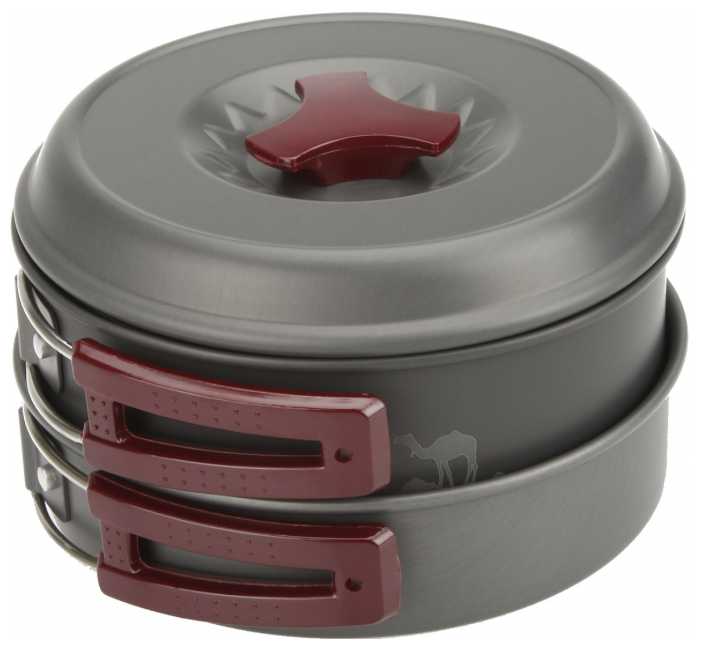 - + Довольно компактный набор посуды на одно-двух туристов.