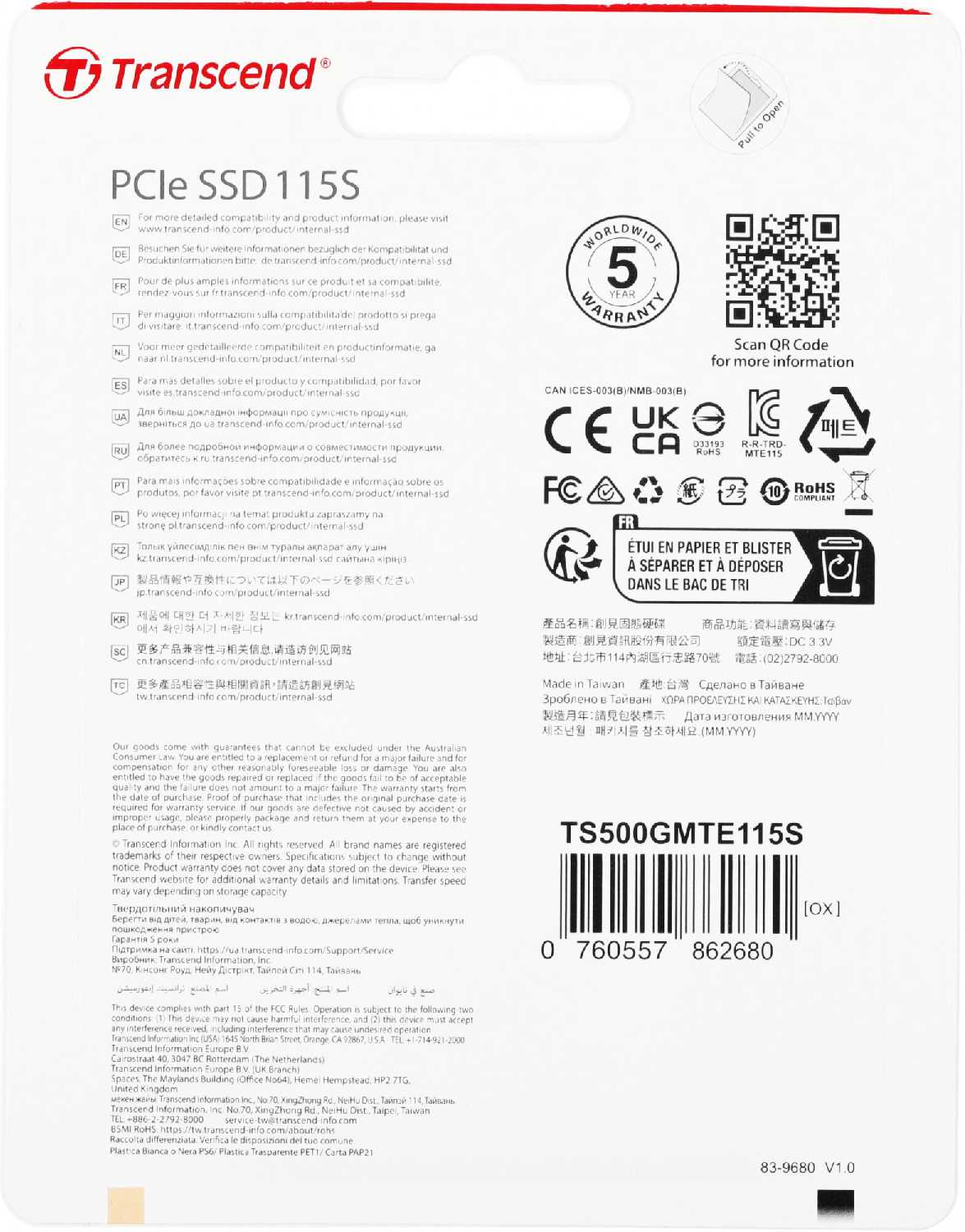 3 отзывов пользователей o Transcend 115S (TS250GMTE115S)