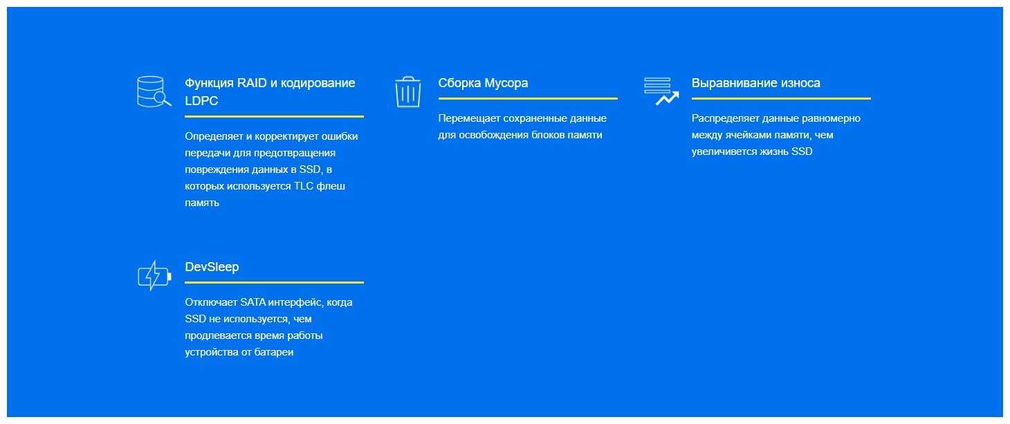 - Технология MLC NAND обеспечивает ресурс записи до 80 TBW.