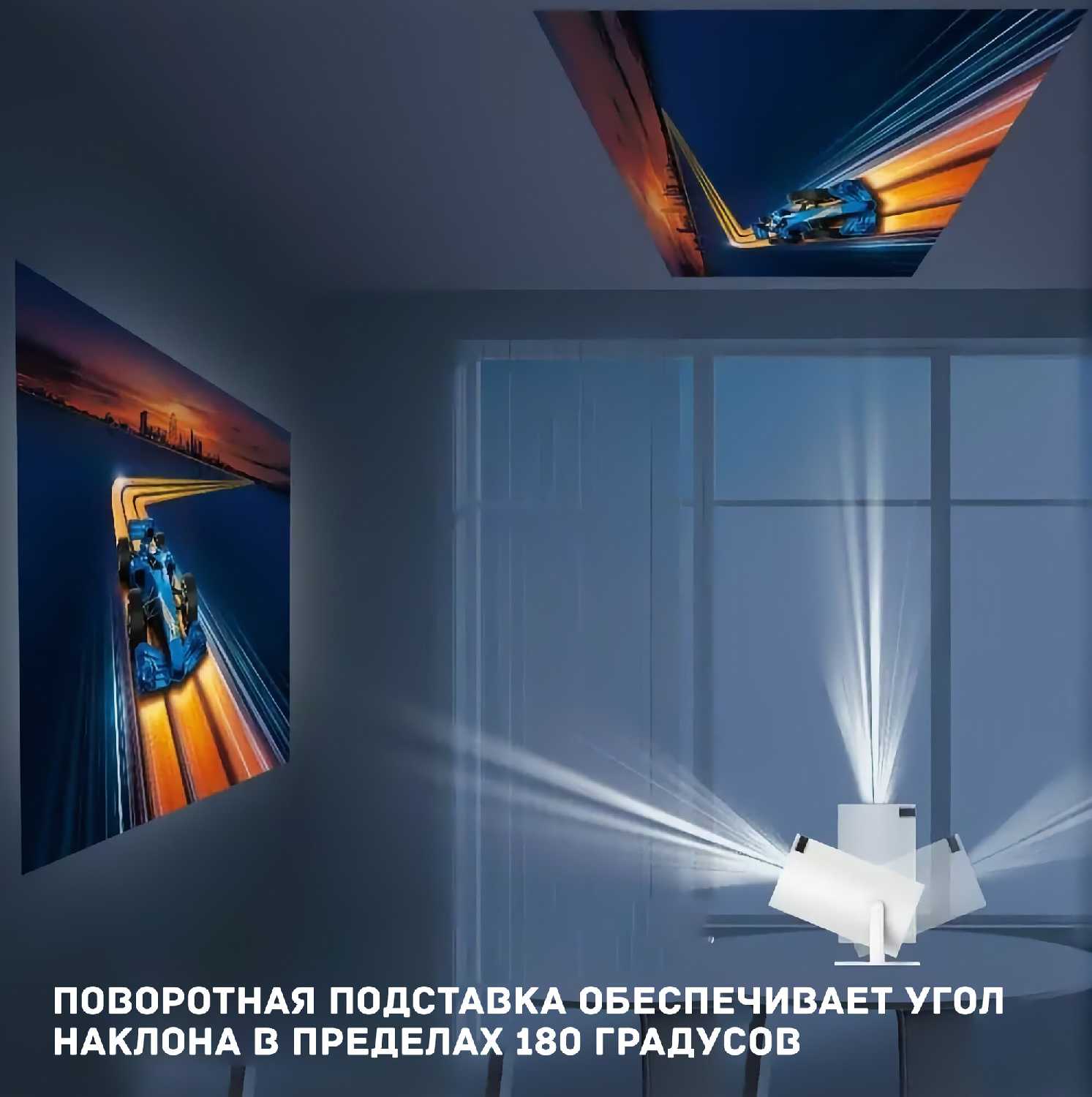 - Видно даже днем с блэкаут-шторами, на голубых обоях или белом фоне проецирует хорошо.