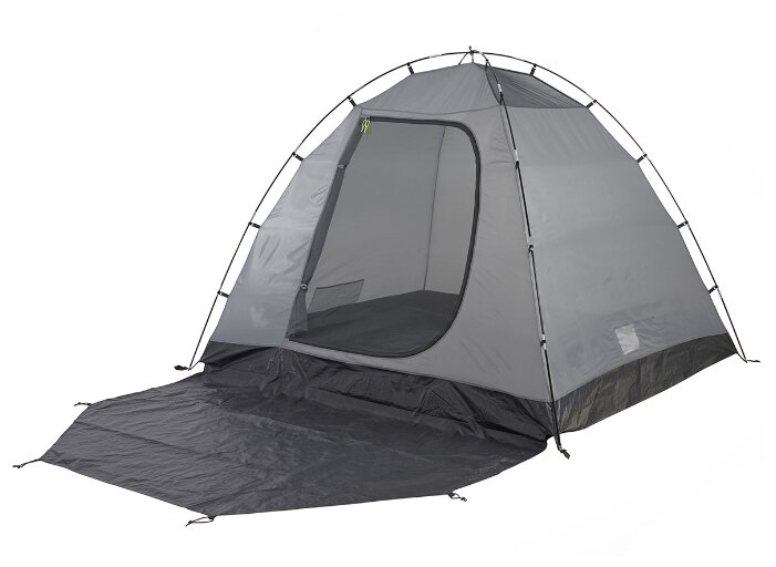 Боковой вход (правый) имеет сетку и отдельную тканевую дверь, обе на молнии. Сетка мелкая, качественная. Козырька нет, оттяжки тканевой двери нет, в случае дождя только закупориваться или зальет пол.
