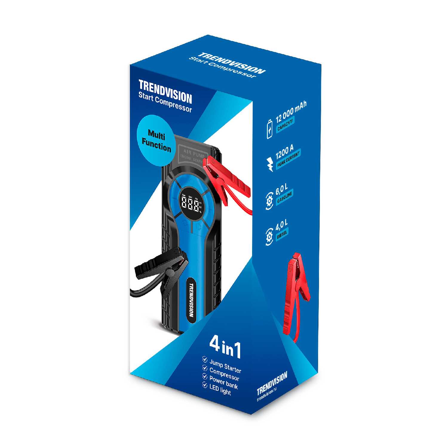 Подробная комплектация : | 1. TrendVision Start Compressor 2. Кейс для устройства 3. Провод для зарядки 4. Воздушный шланг 5. Комплект насадок 6. Инструкция с гарантийным талоном |
