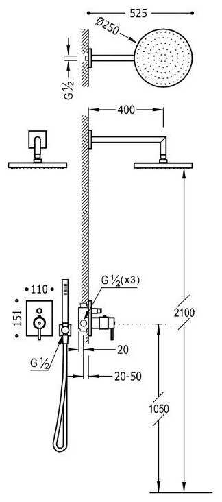 | Дополнительная информация : | диаметр верхнего душа: 250 мм |