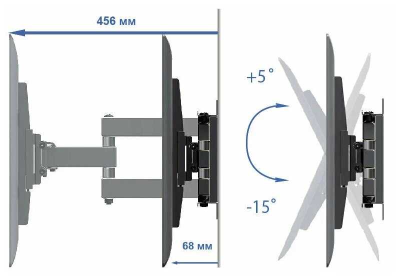 | Способ регулировки : | поворот, отступ от стены, наклон и поворот, наклон |