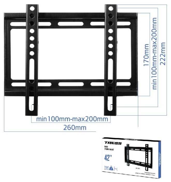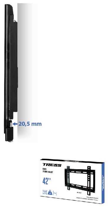Отзывы о Кронштейн для телевизора на стену фиксированный с диагональю 23"-42" TRESS WM 2022F, черный