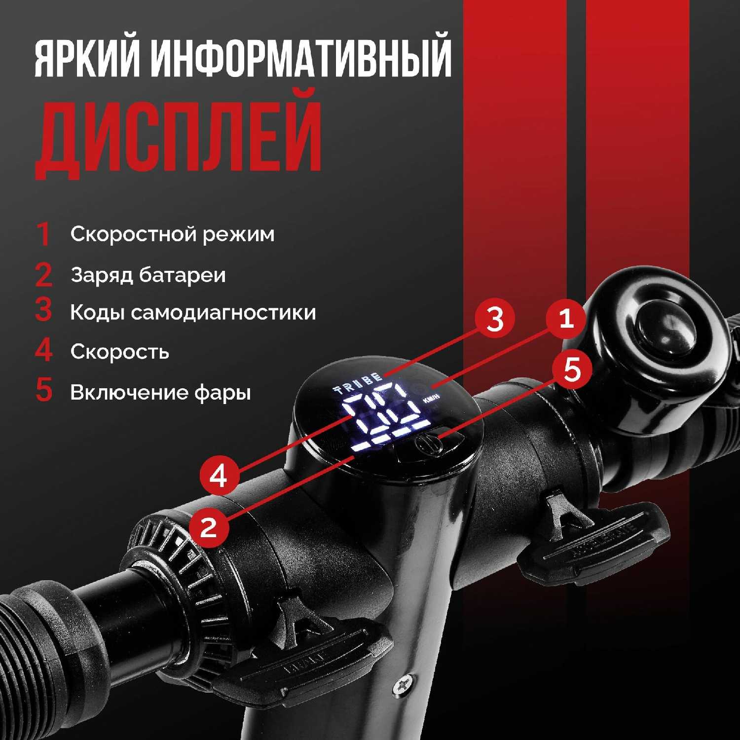 Особенности электросамоката : | дисплей, индикатор заряда, индикатор скорости, передняя фара (фонарь), привод задний |