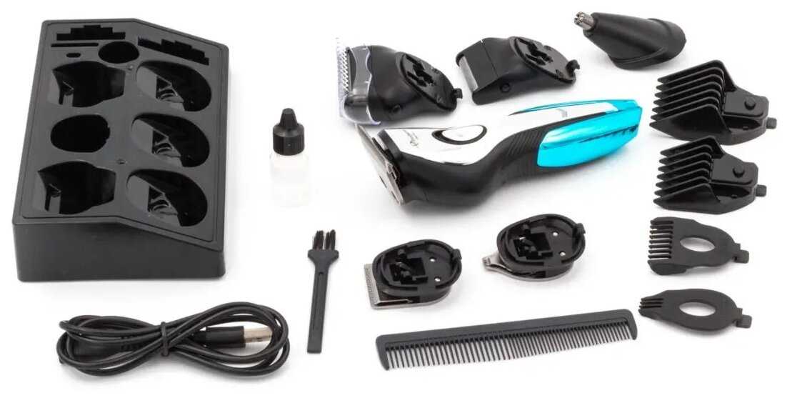 Geemy 4 насадки, дисплей, USB зарядка, щеточка для очистки лезвий, нержавеющая сталь
