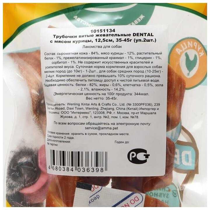 Норма употребления : | для собак мелких пород (до 10 кг) - 1-3 шт., для собак средних пород (10-20 кг) - 3-5 шт., кормление не должно превышать 10% суточного рациона |