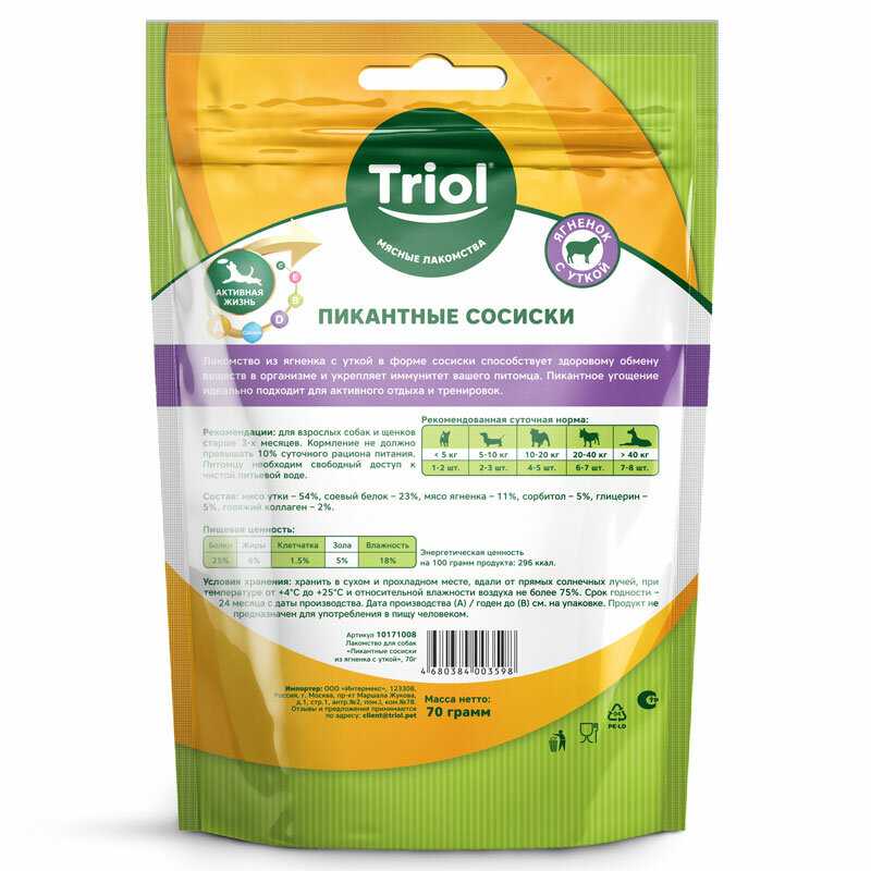 10 отзывов пользователей o Triol Пикантные сосиски из ягненка с уткой