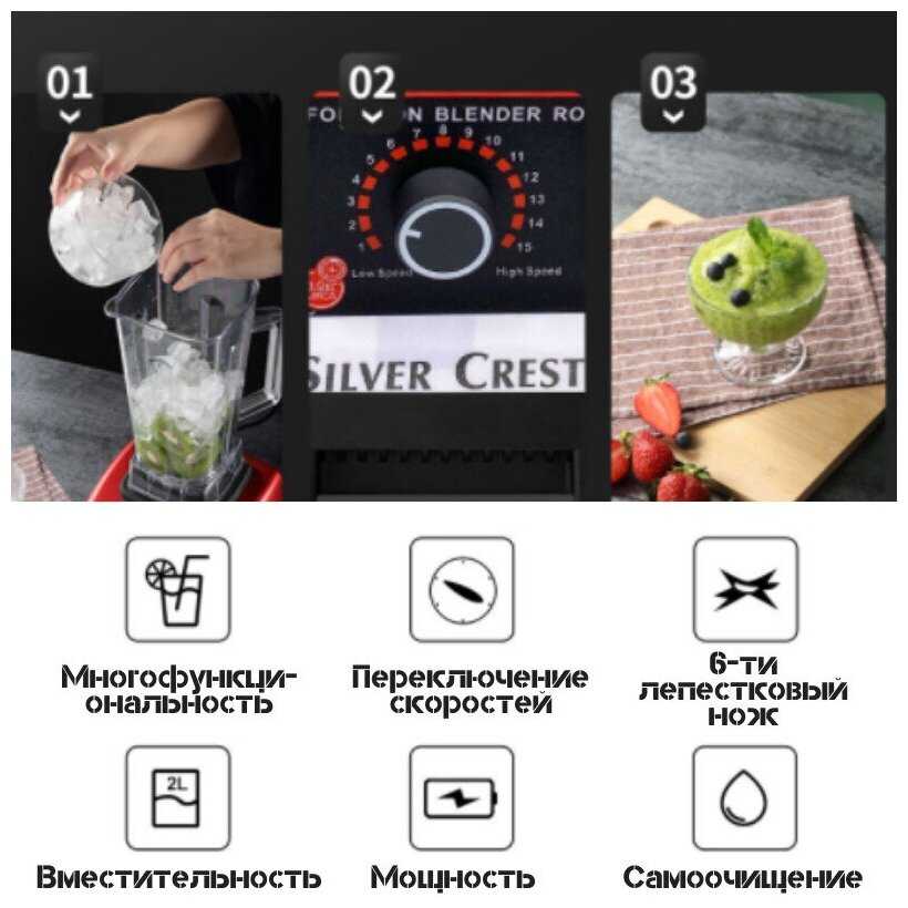 Дополнительные функции : | колка льда, плавная регулировка скорости, самоочистка |