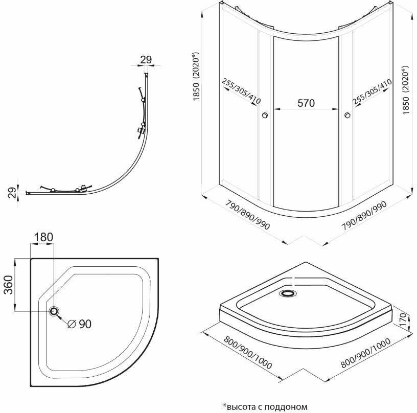 Монтаж ограждений : | на поддон, напольный, пристенный |