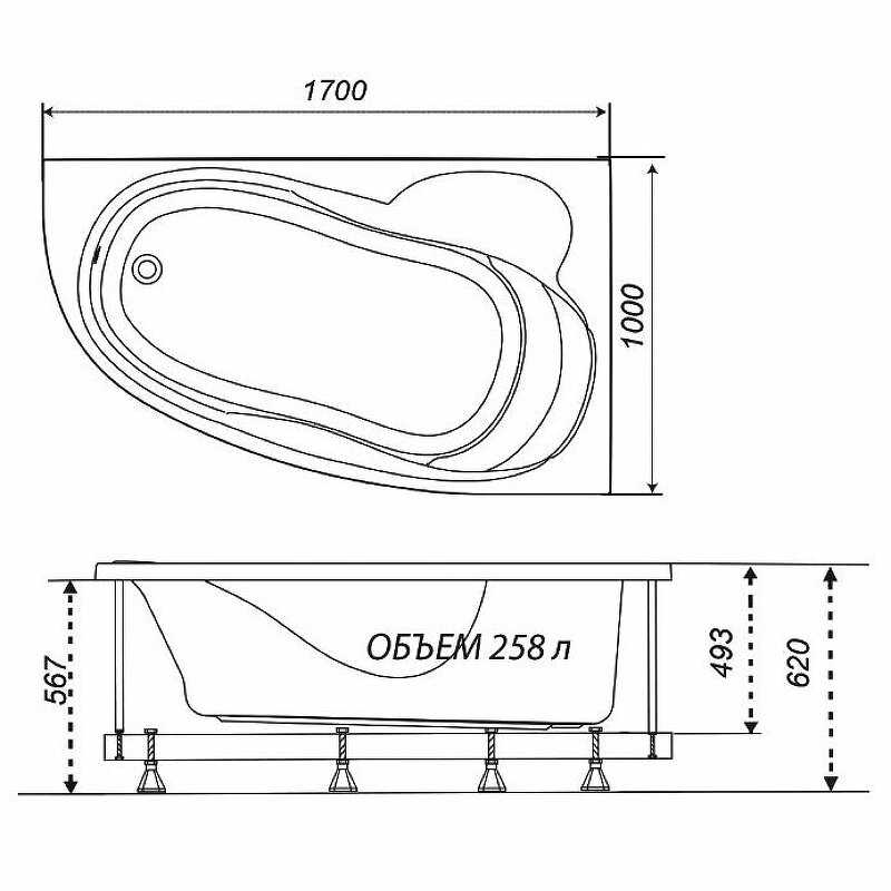 | Особенности : | противоскользящее покрытие дна, регулируемая высота ножек, съемная фронтальная панель, установка на каркас |