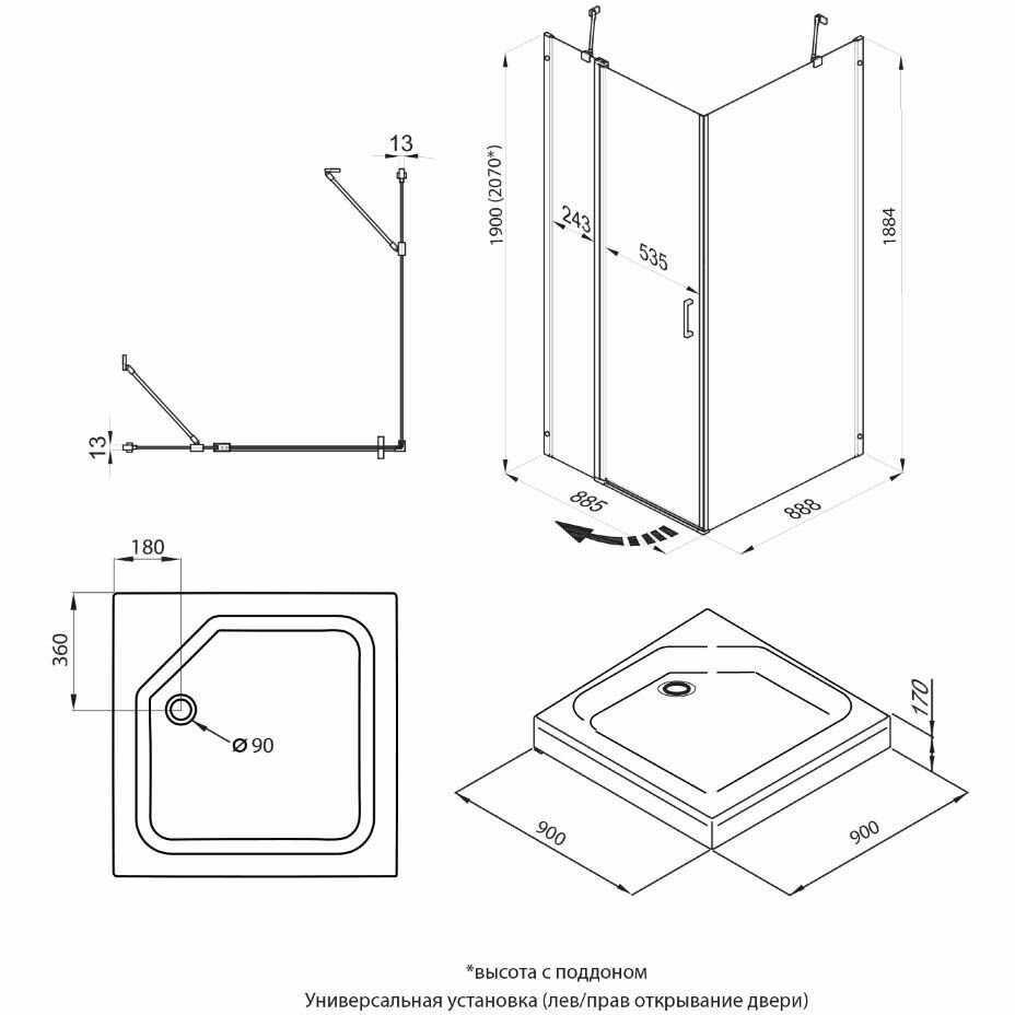 Монтаж ограждений : | на поддон, напольный, пристенный |