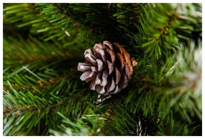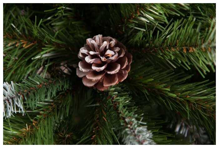 - + Красивая елка! За счет белого напыления и шишек выглядит очень нарядно. Немного игрушек и света и получается новогодняя красавица!