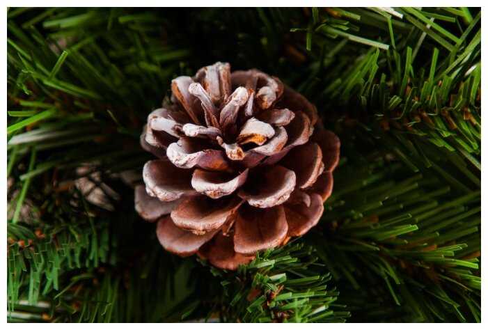 - + Даже при близком рассмотрении выглядит, как настоящая!Очень прочная и устойчивая.При тестировании(трияски:)не упало ниодной иголочки.Не имеет токсичного запаха.Настоящии шишки.Компактно складывается...
