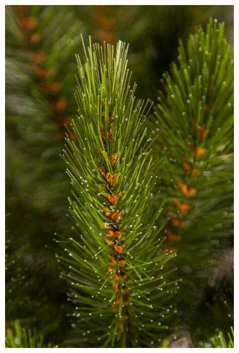 Очень похожа на натуральную, иголочки не осыпаются, на кончиках белые капельки (будто заснеженная чуть-чуть).