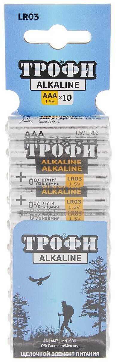 15 отзывов пользователей o ТРОФИ Батарейка алкалиновая "Трофи", тип ААА (LR03), 10 шт