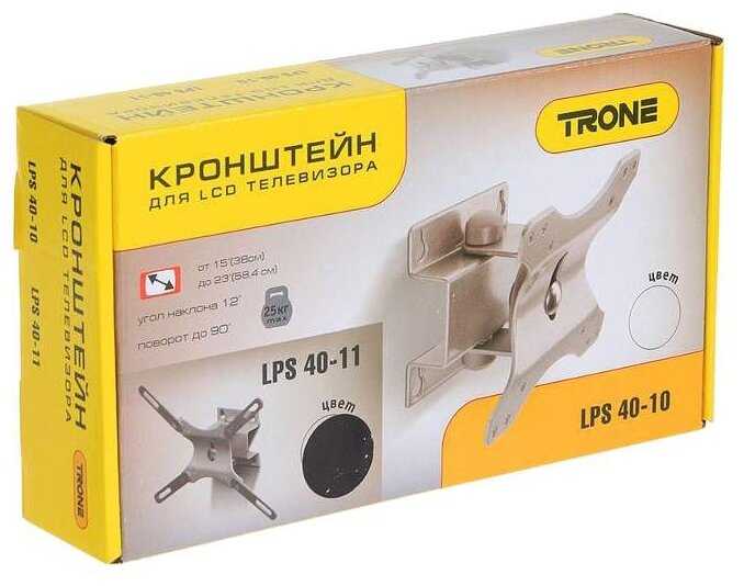 | Регулировка : | наклон, наклон и поворот, отступ от стены, поворот |