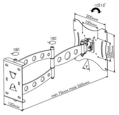 - вылет от стены/потолка 75-565 мм