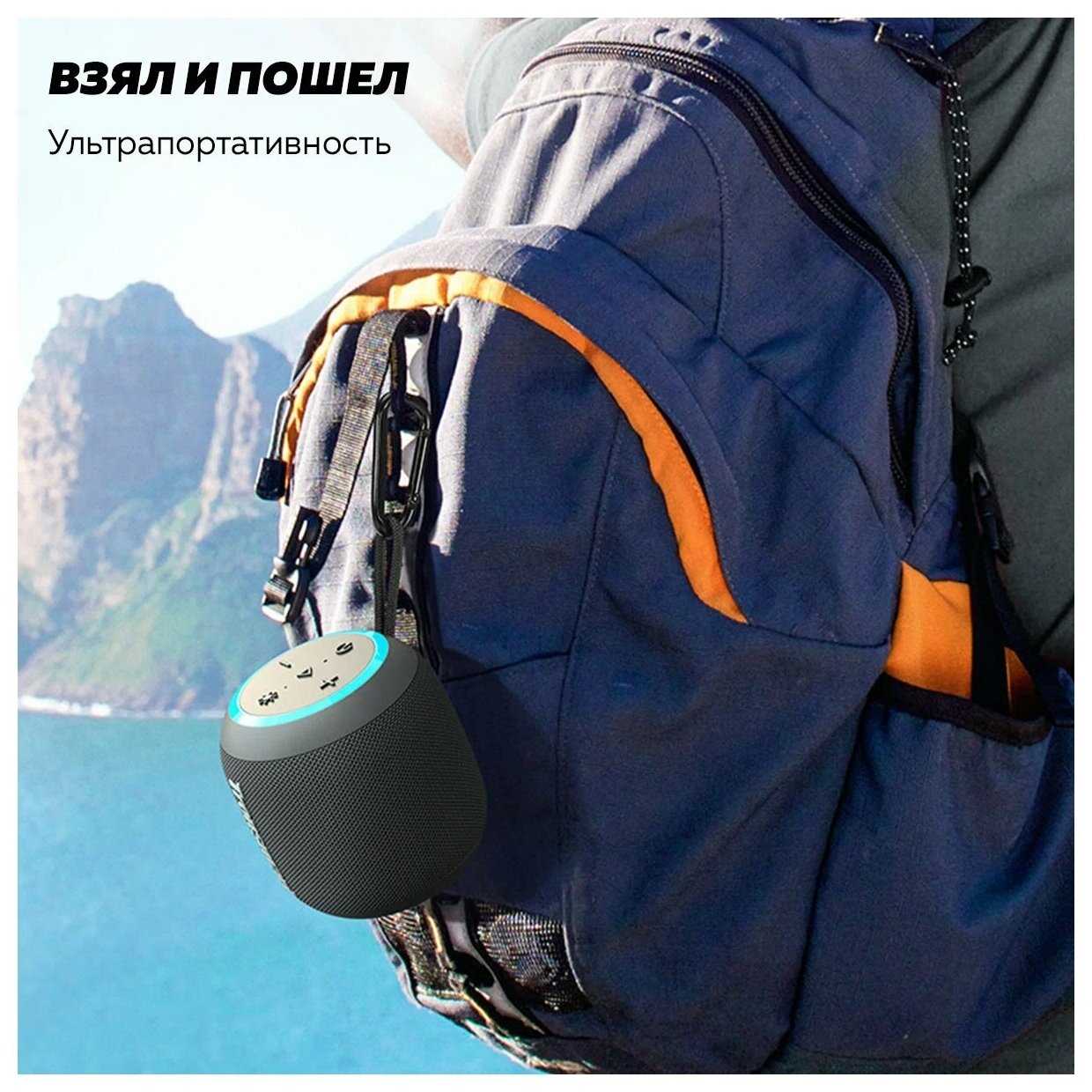 Цилиндрический дизайн с тканевой вставкой выглядит стильно, но практичность спорна: при подвешивании на карабине колонка склонна вращаться вокруг оси, смещая динамики. Вес (около 700 г) ощутим при длительном ношении в руке, хотя встроенная петля из паракорда надежна. -