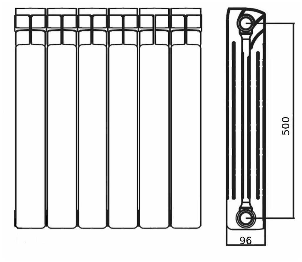 | Теплоотдача при ∆T 70 °С на секцию : | 122 Вт |