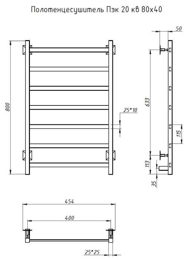Характеристи Тругор 454х800мм форма лесенка 7 перекладин универсальное подключение