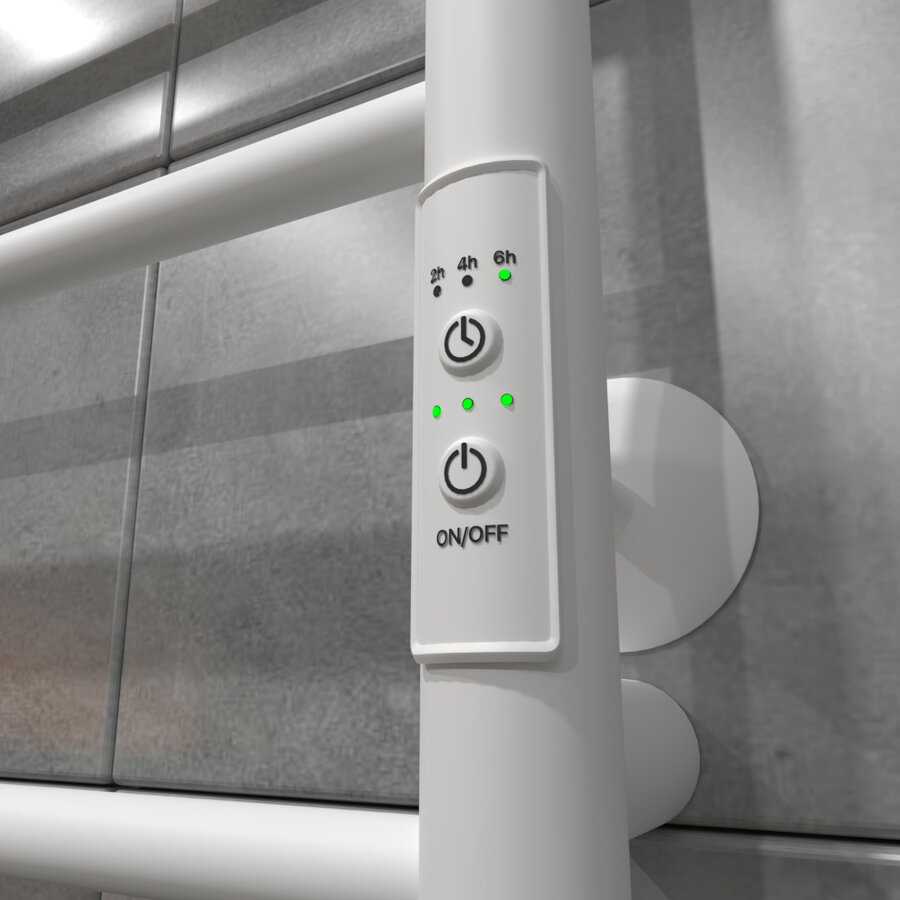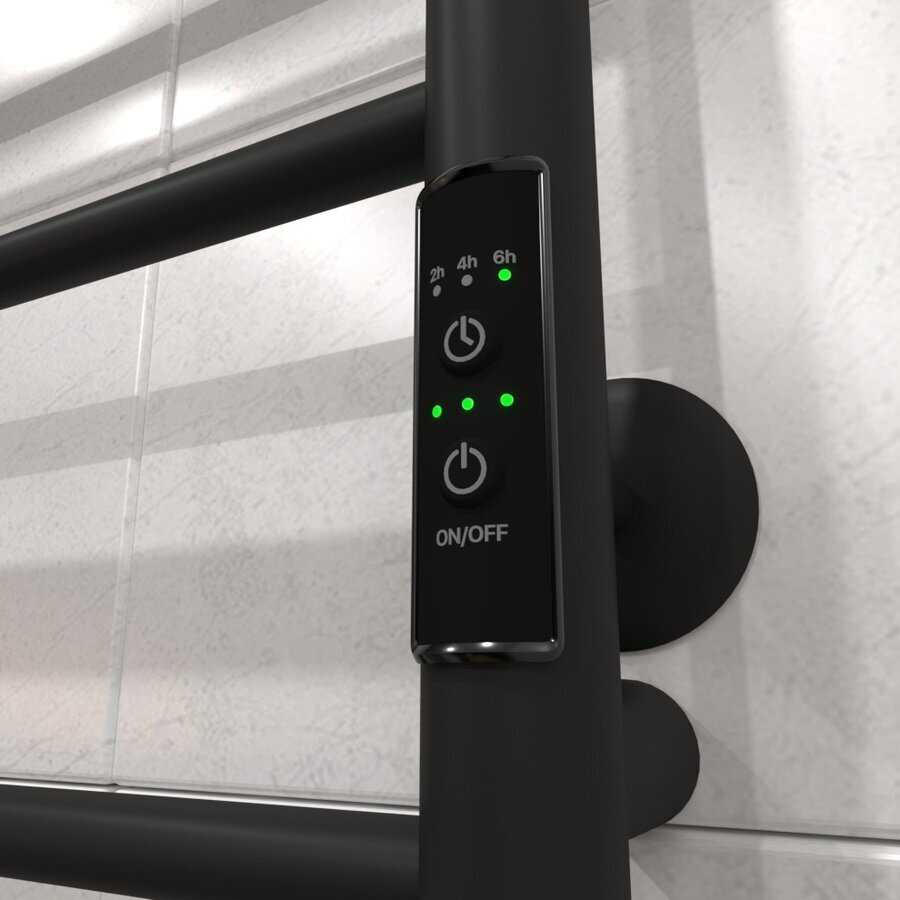 - + Возможность скрытого подключения слева и справа, есть так же вилка для подключения к розетке. Три режима работы по таймеру и три режима степени нагрева. Три верхние трубки установлены с небольшим вылетом относительно друг друга, это хороший плюс.