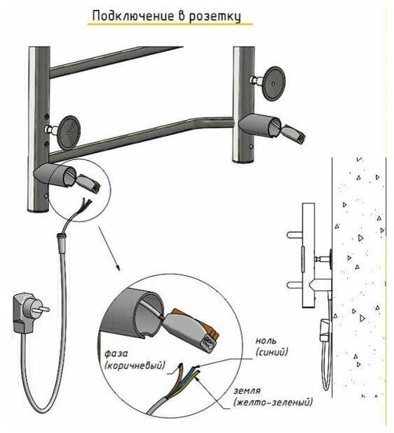 | Подключение : | скрытое электрическое соединение, электропровод с вилкой |