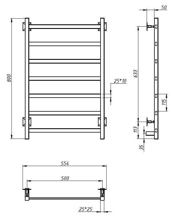 | Дополнительная информация : | Шнур электрический с вилкой, терморегулятор с таймером, скрытое подключение к электричеству - комплект, телескопические держатели для электрополотенцесушителя - 4шт., комплект крепежа сантехники, паспорт полотенце сушителя, Полотенцесушитель электрический для ванны лесенка 80х50 -1ш |