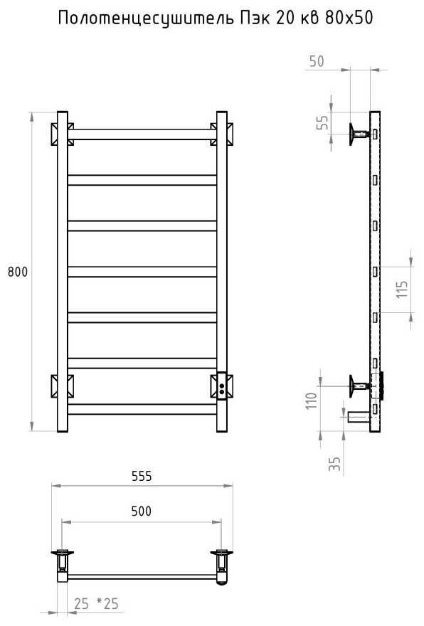 | Дополнительная информация : | полотенцесушитель, телескопические держатели, декоративные заглушки, шнур с вилкой, паспорт изделия. |