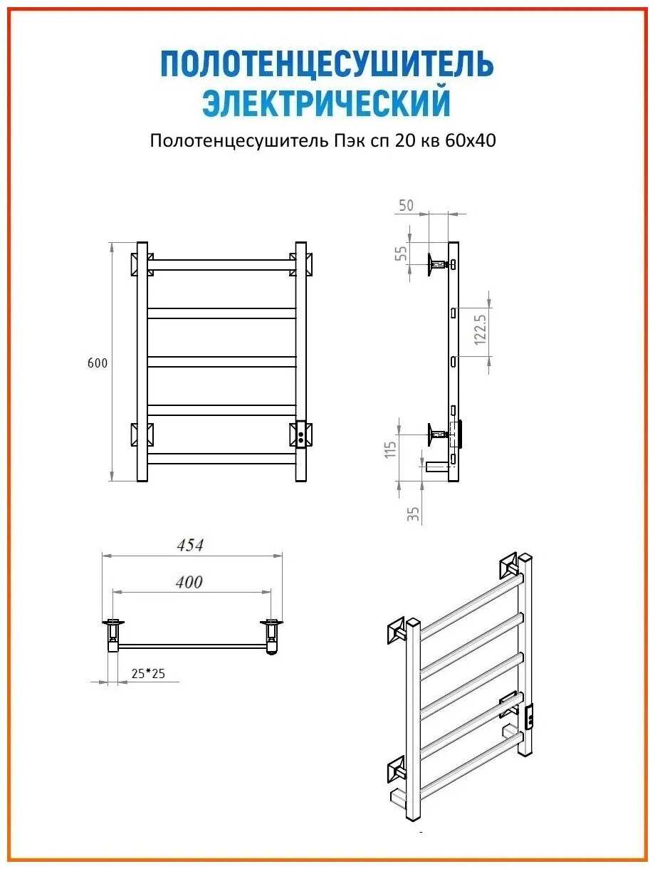 Отзывы о Полотенцесушитель электрический Тругор Пэк сп 21 кв 60х40 черный ВГП