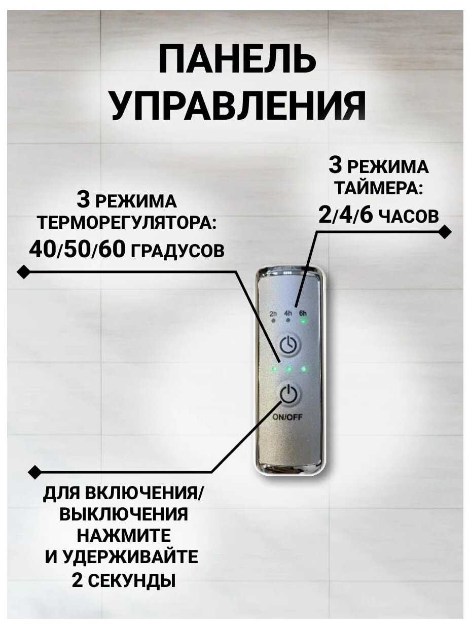 | Особенности : | кнопка включения/выключения, с таймером, терморегулятор |