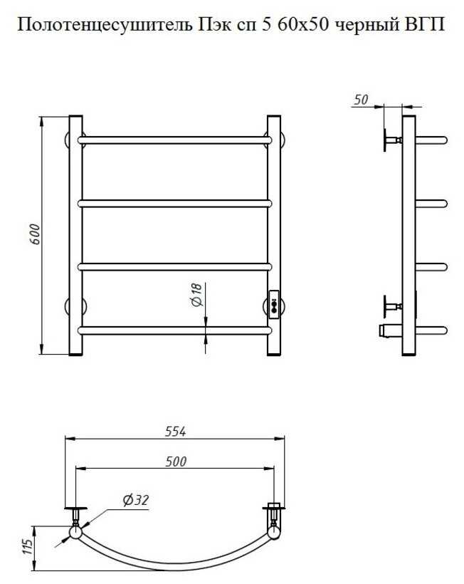Отзывы о Полотенцесушитель Электрический Тругор Пэк сп 5 60х50 черный ВГП