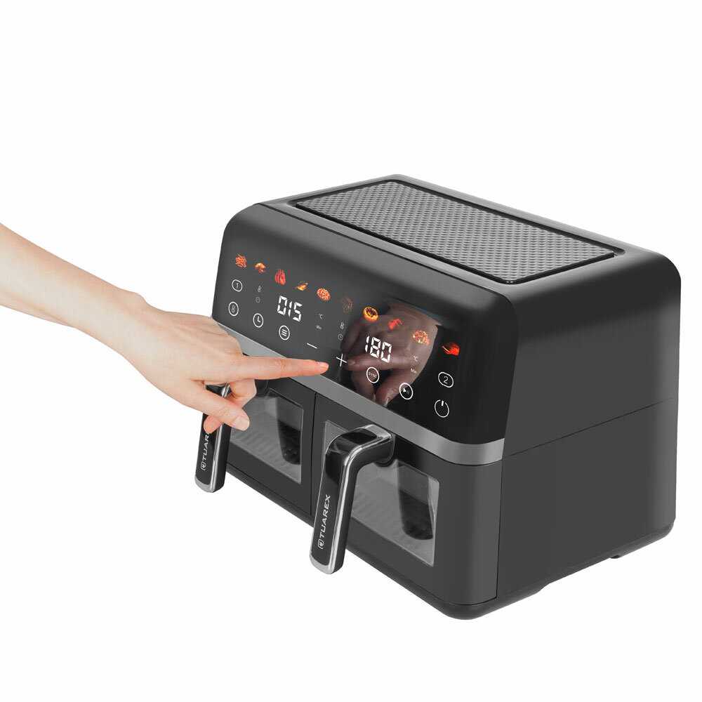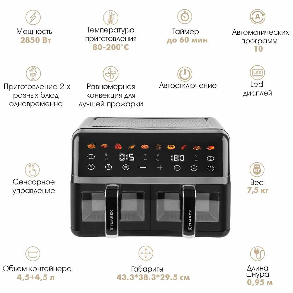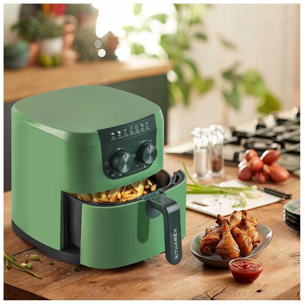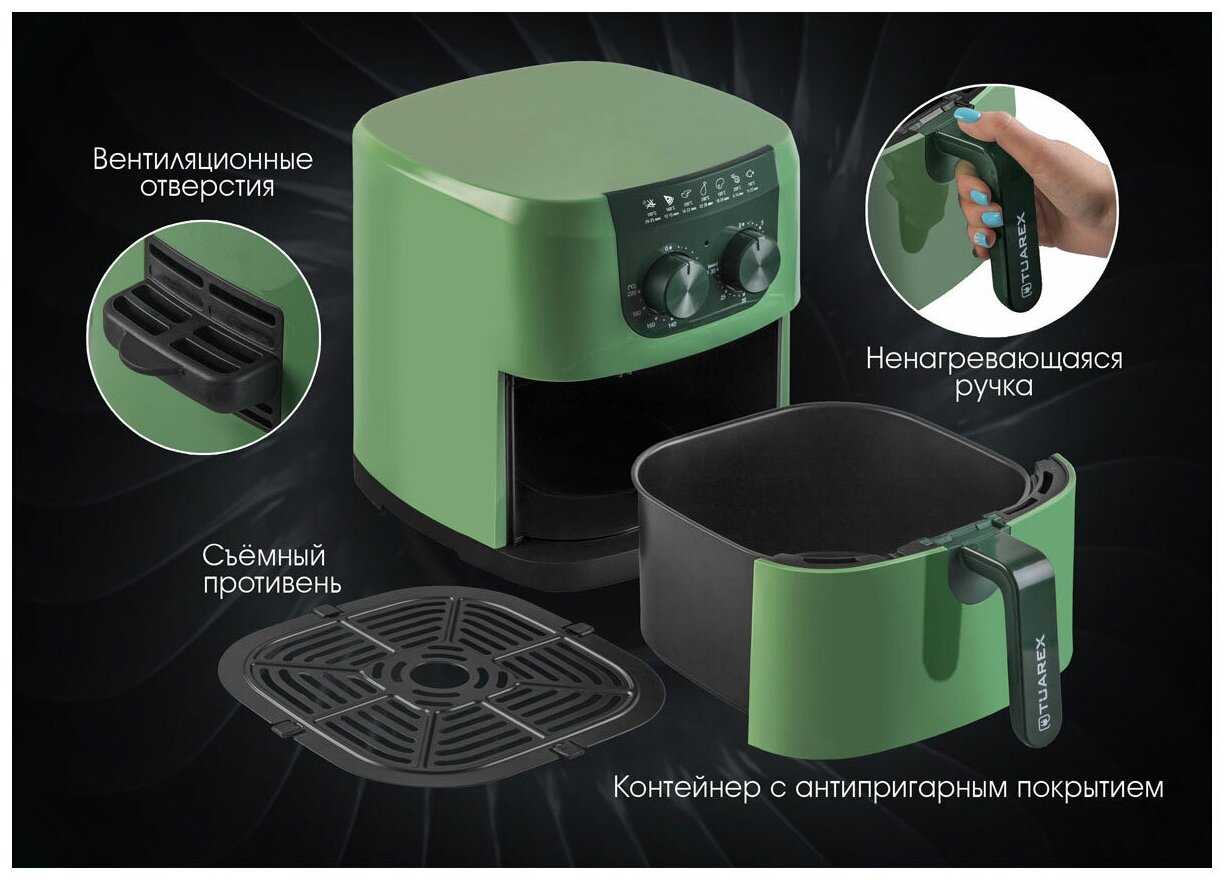 - Картофель фри, курица и овощи приобретают вкус, близкий к жареному, но без жира и брызг, что делает еду легче.